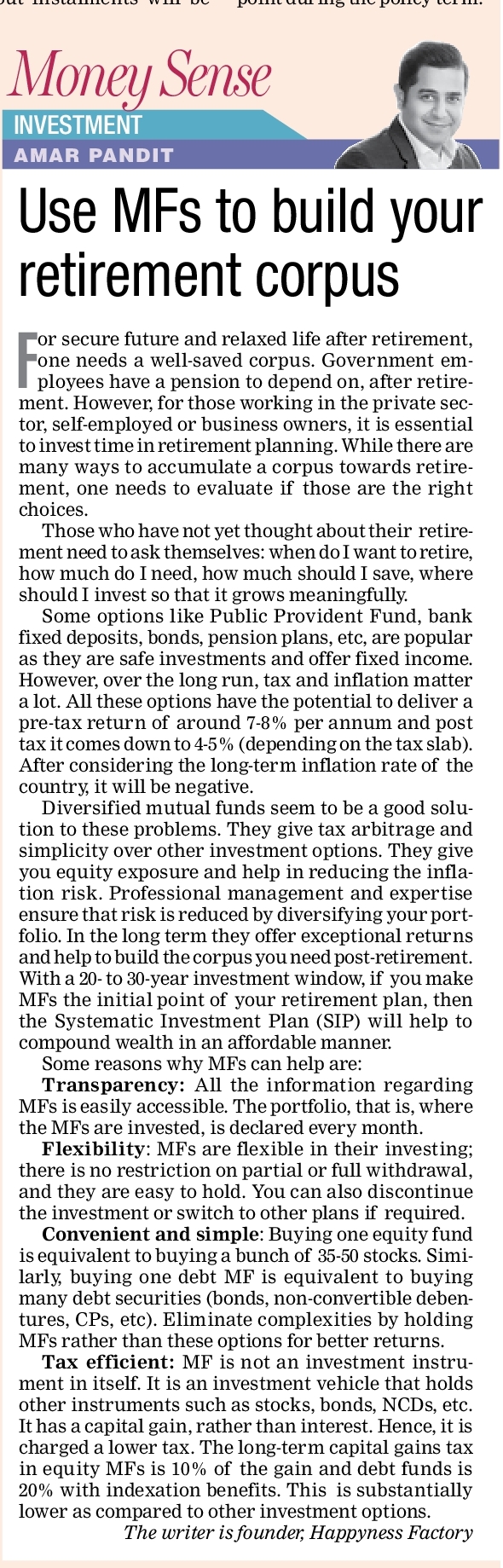 Mutual Funds - Use MFs To Build Your Retirement Corpus