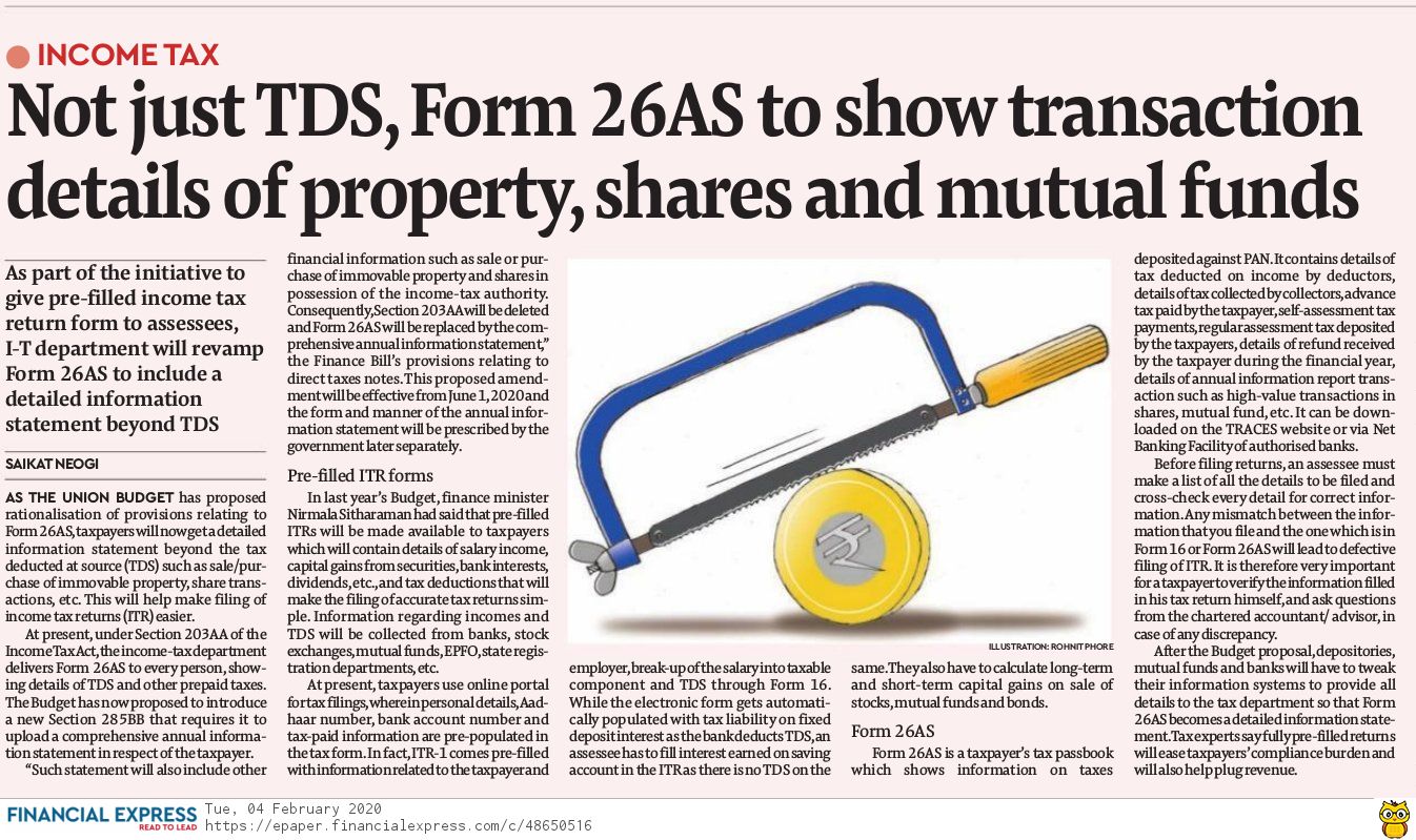 Mutual Funds - Not Just TDS Form 26AS To Show Transaction Details Of Property Shares And Mutual Funds